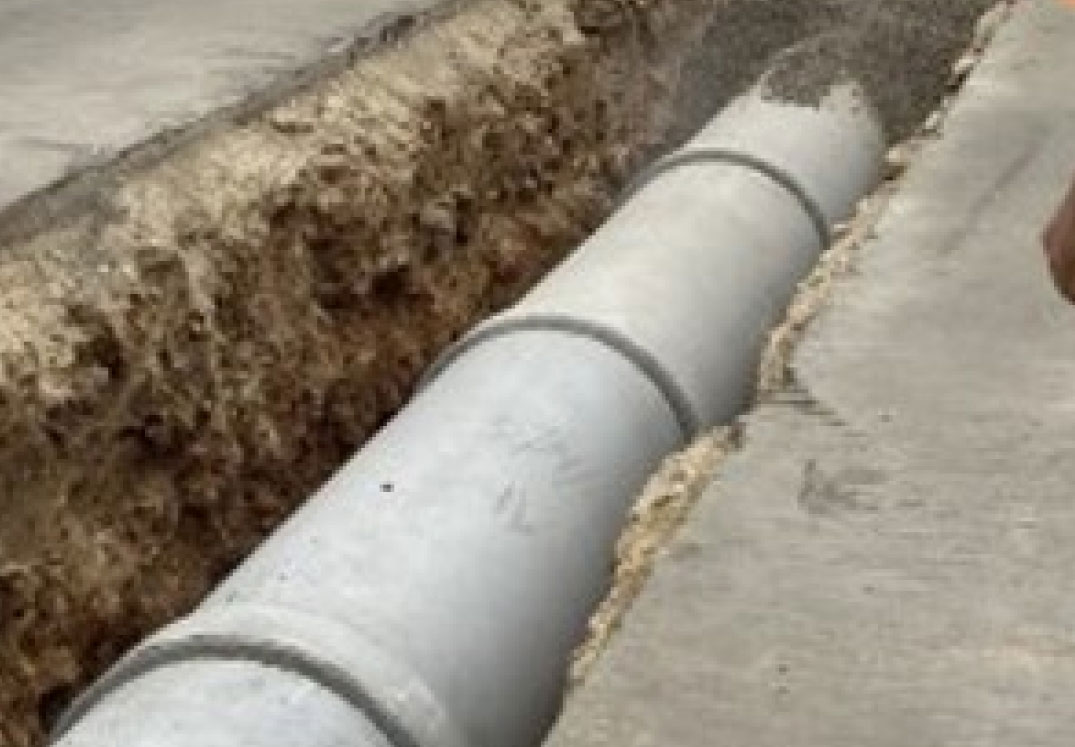 Underground pipes that collect rainwater from storm intakes and transport it to nearby drainageways and creeks.